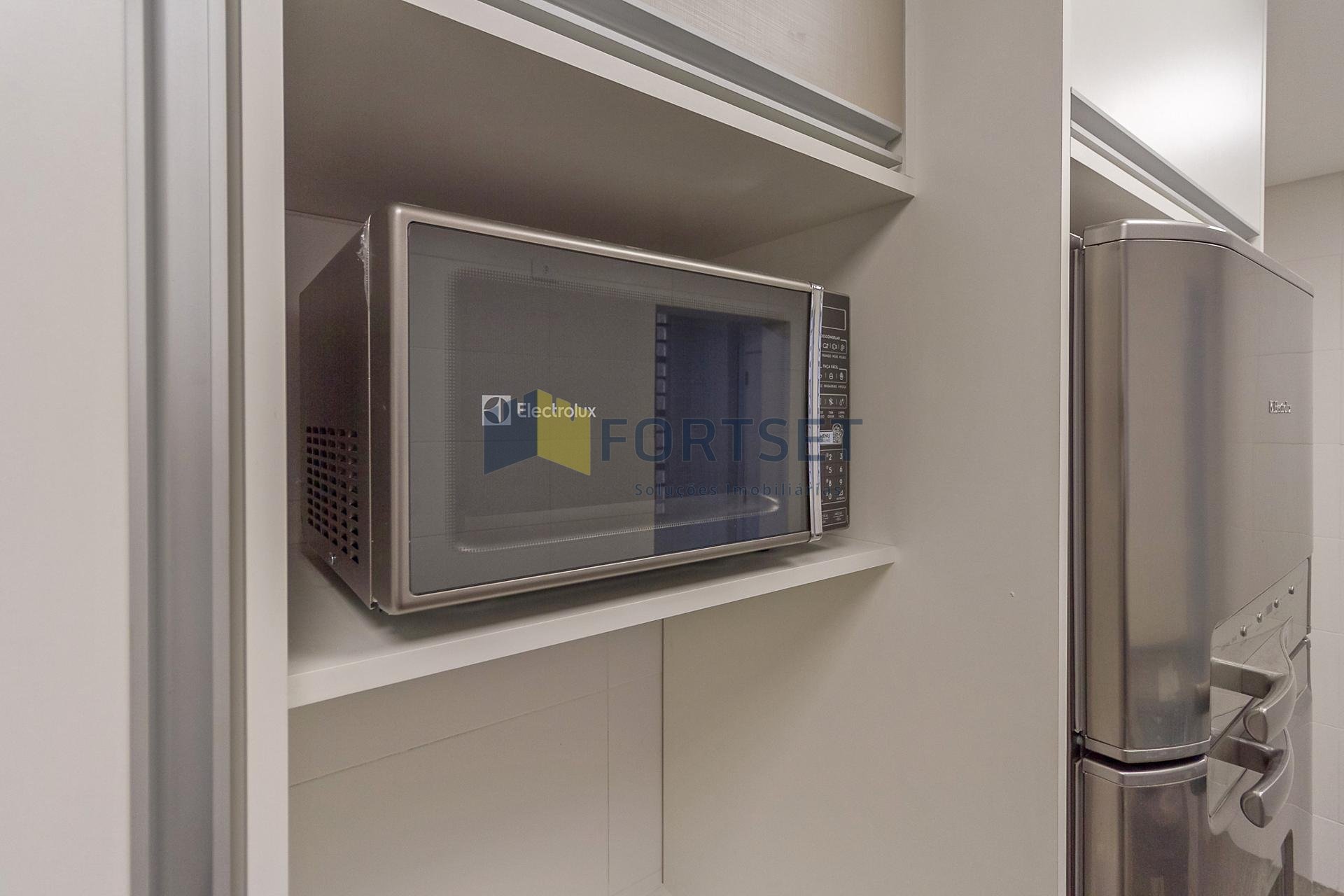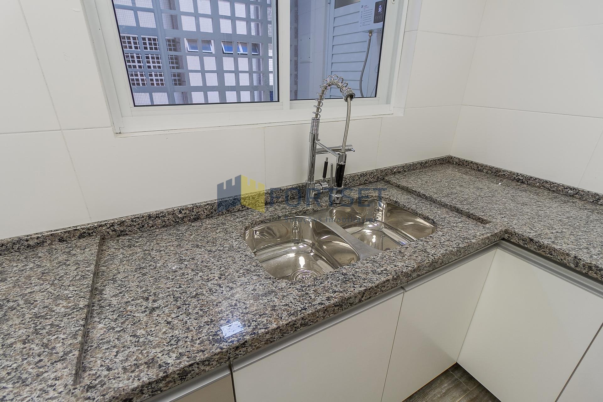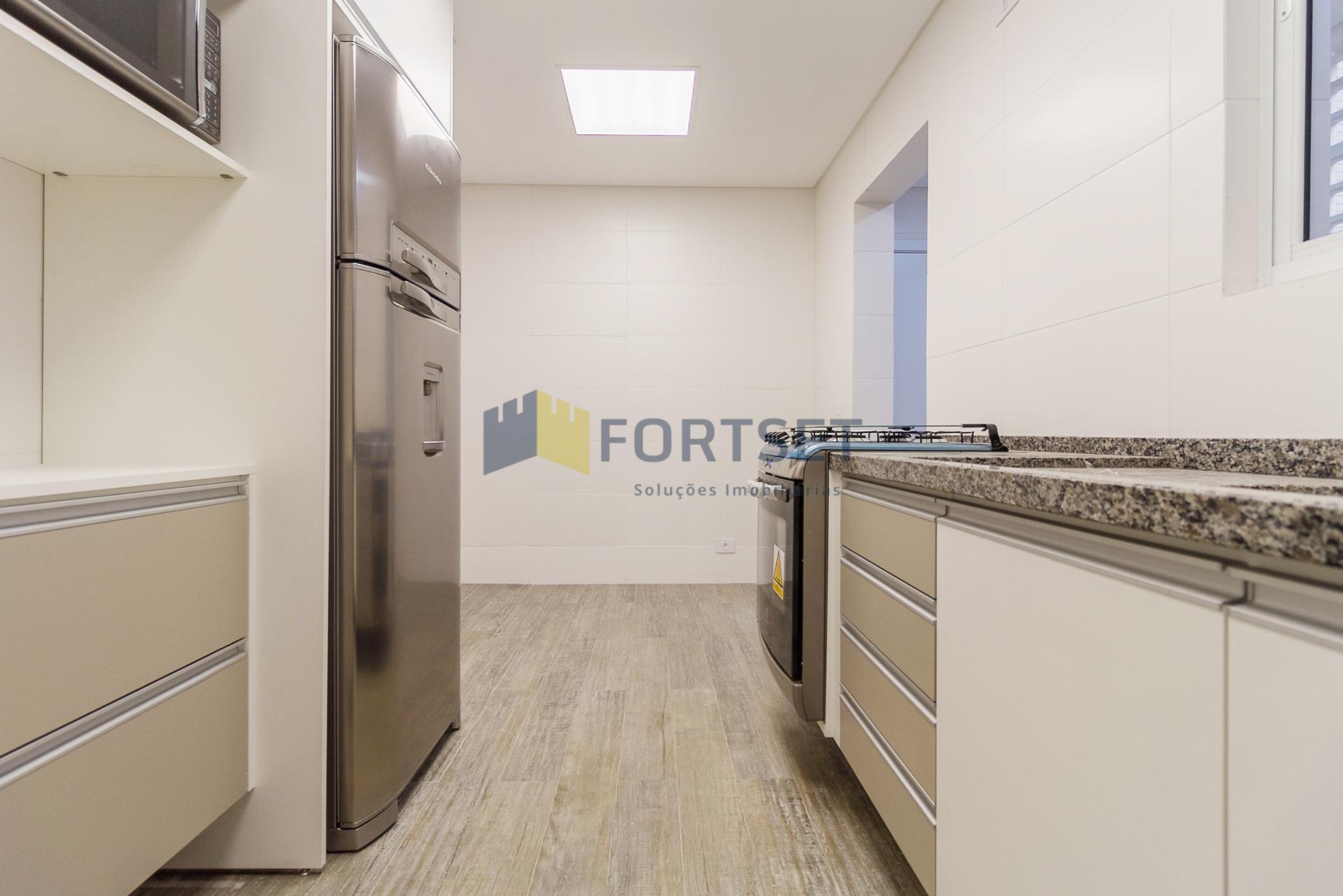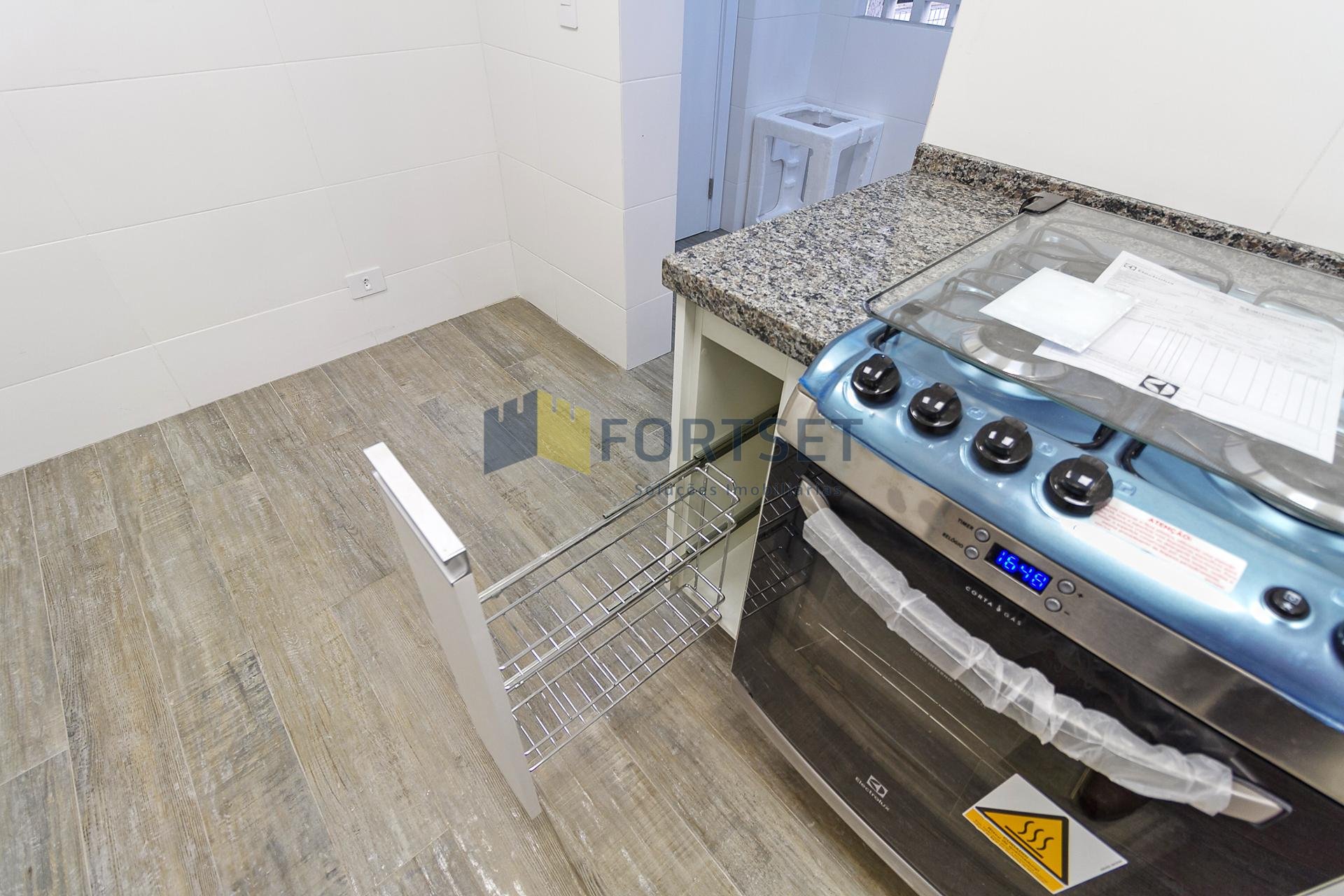 Com 101,42 m² de área privativa, o imóvel é bem ventilado e iluminado. Possui três quartos, sendo uma suíte com armários planejados, além de sala integrada, lavabo e cozinha equipada com armários.