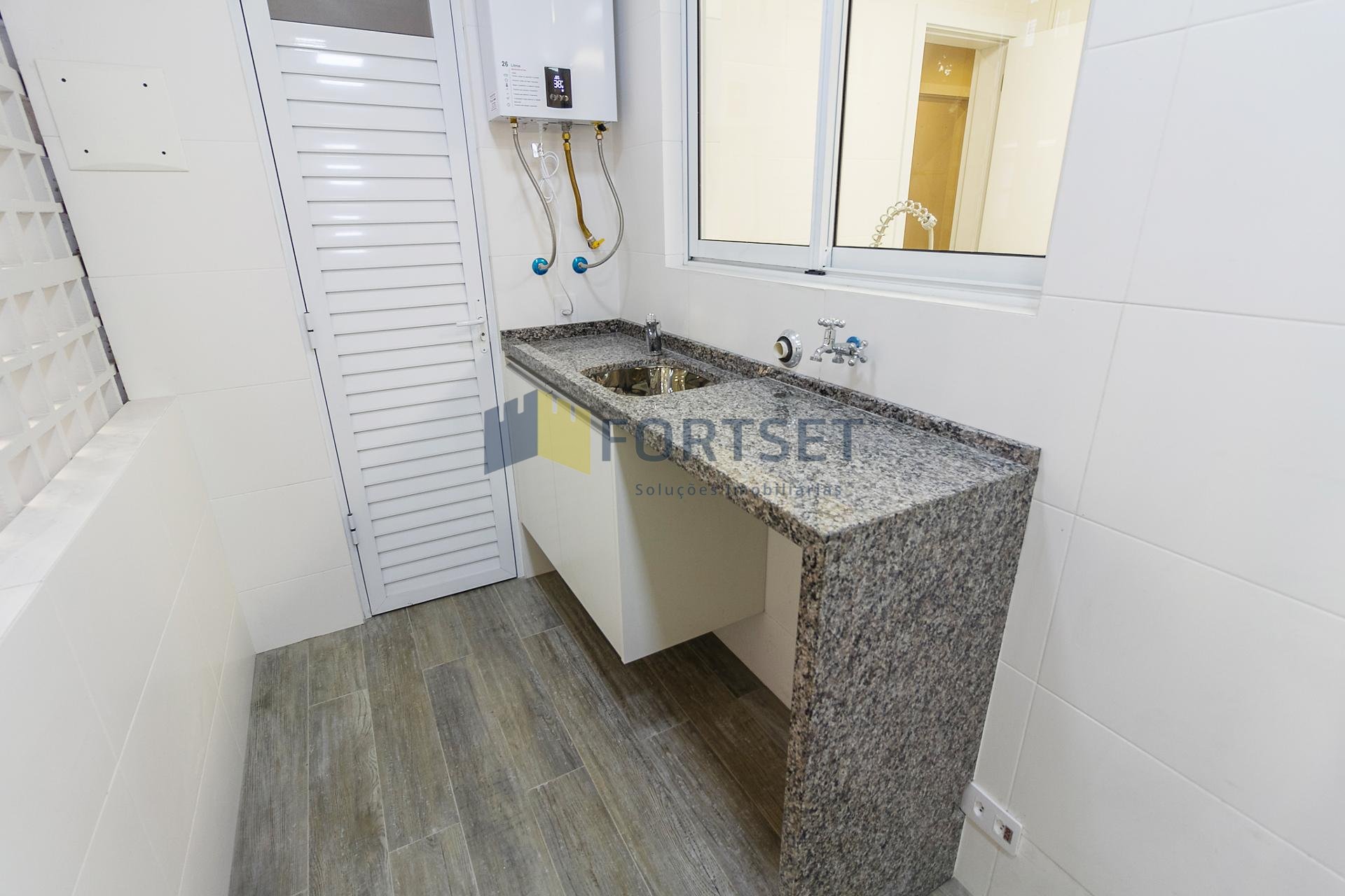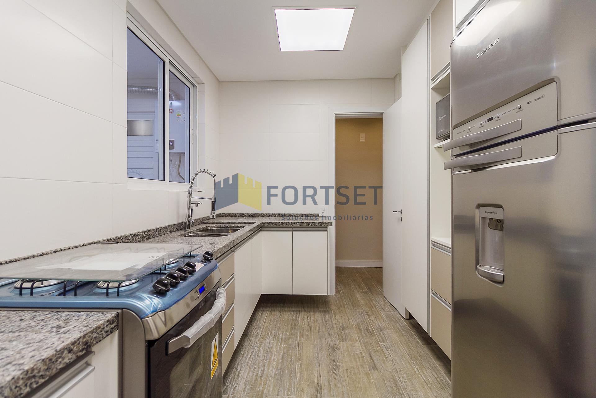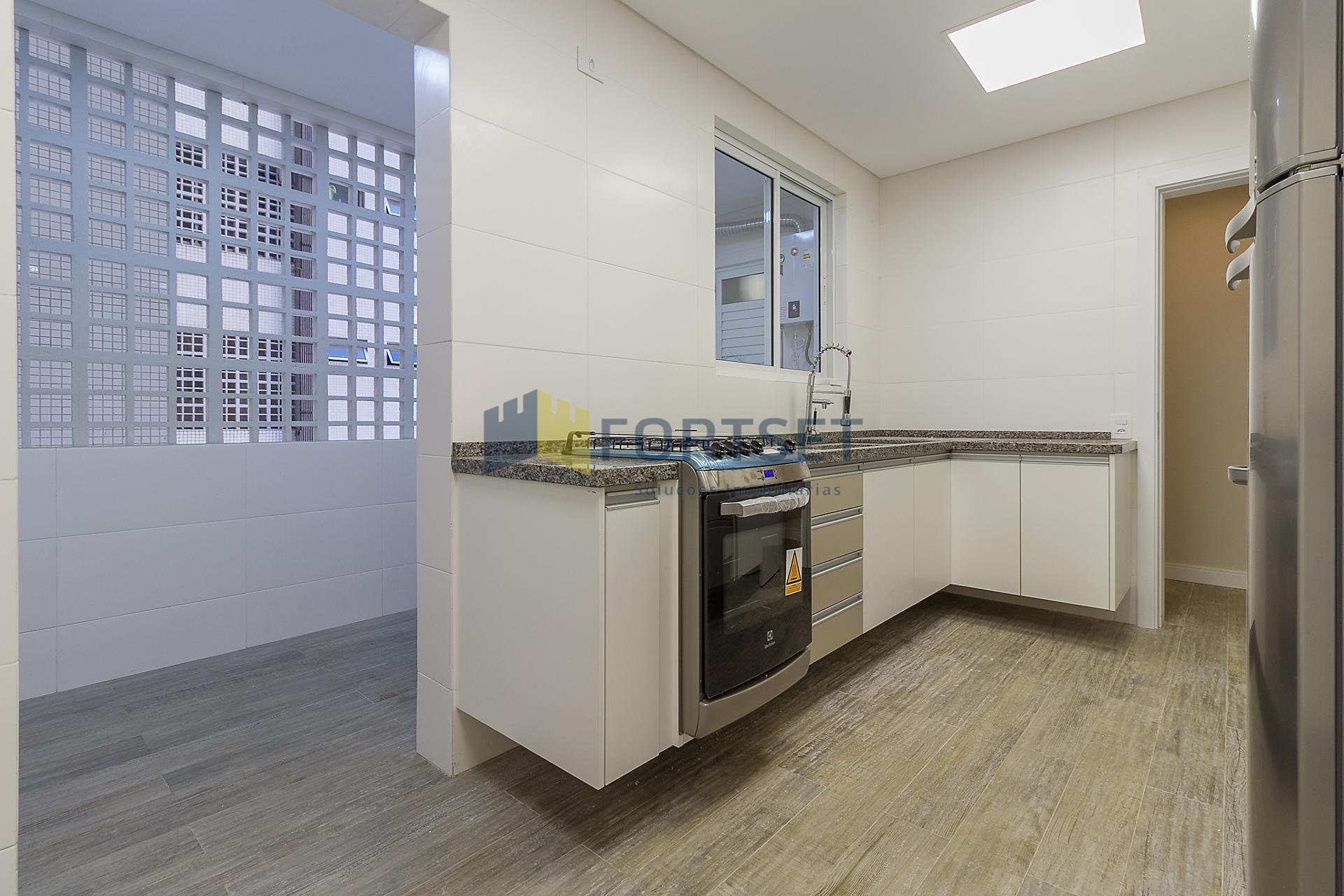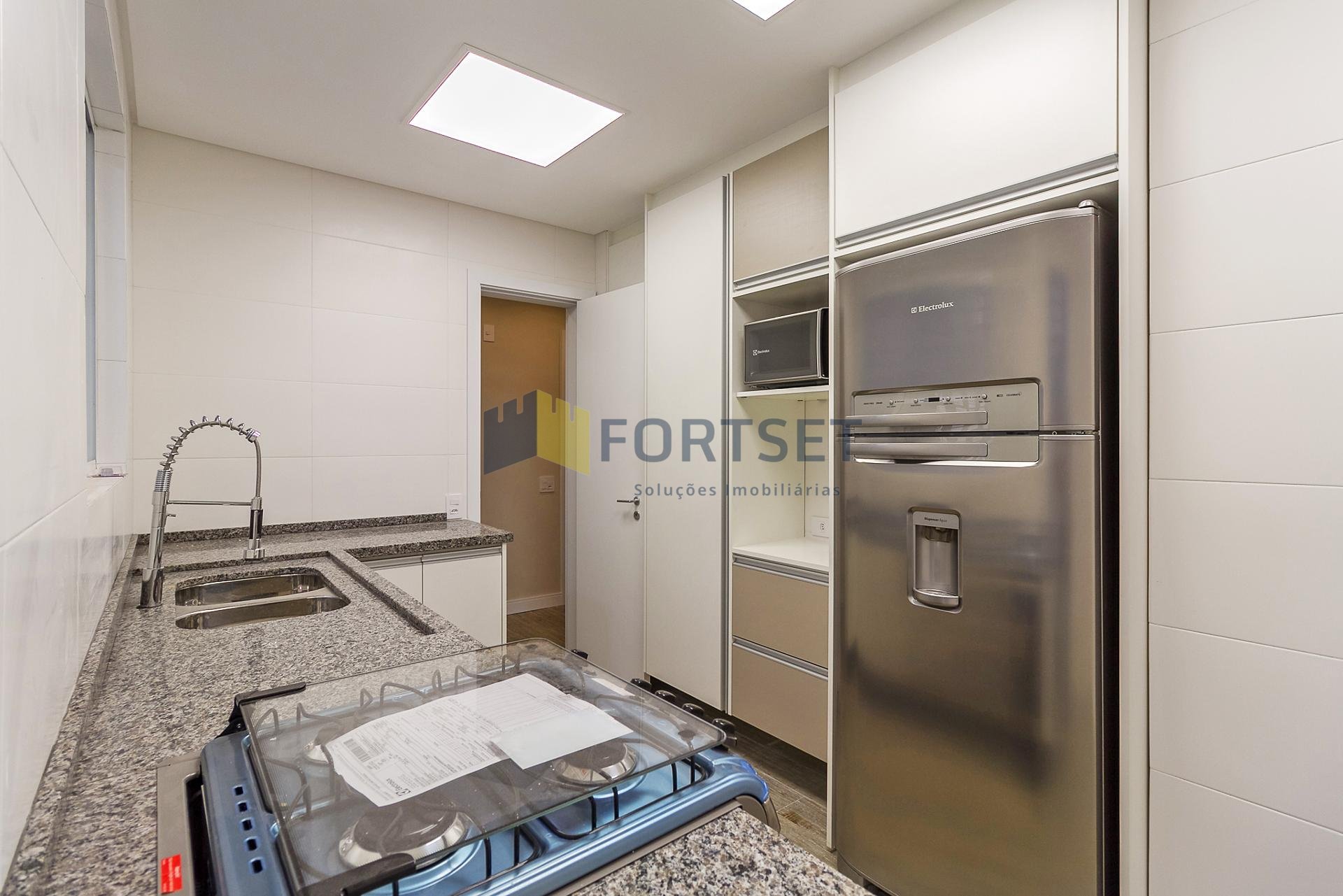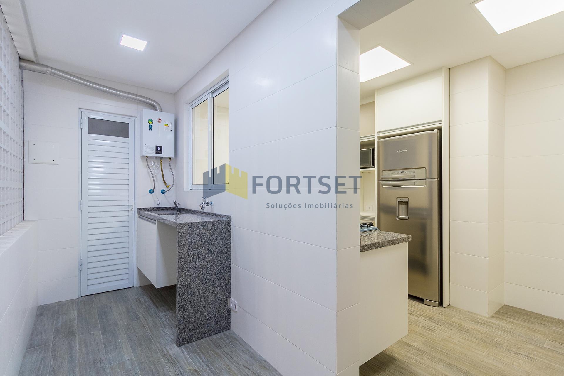 Com 101,42 m² de área privativa, o imóvel é bem ventilado e iluminado. Possui três quartos, sendo uma suíte com armários planejados, além de sala integrada, lavabo e cozinha equipada com armários.