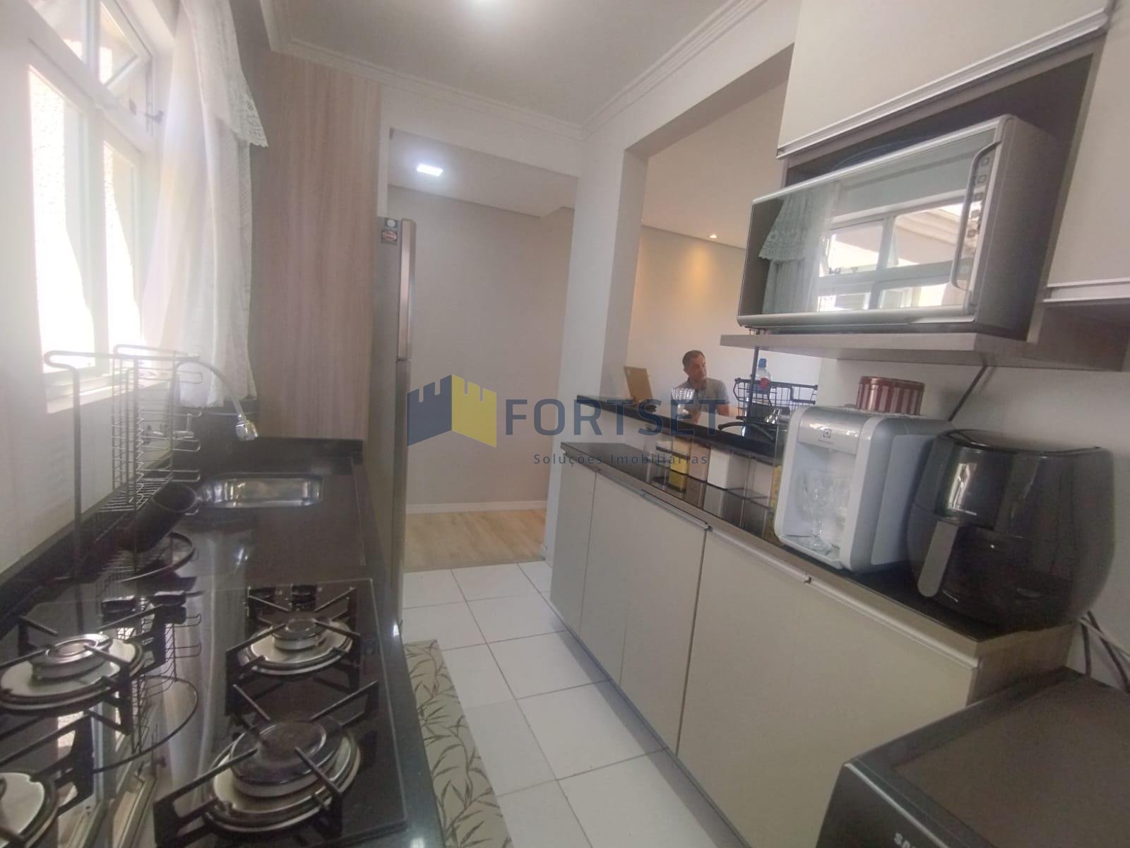 Cozinha planejada com armários sob medida, perfeita para quem gosta de praticidade na hora de cozinhar.