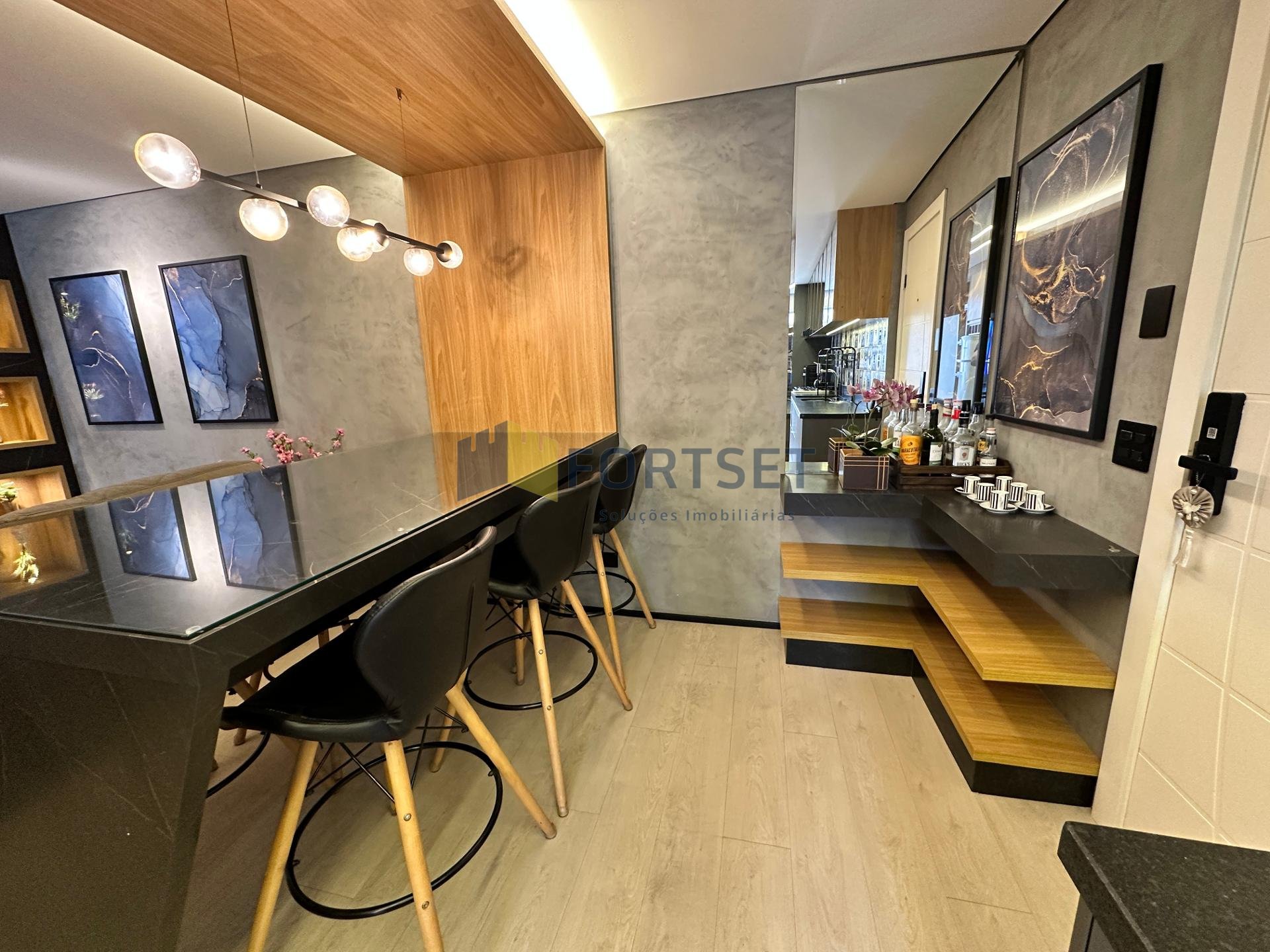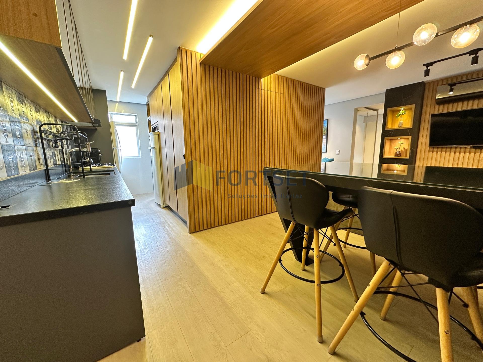 O imóvel está todo reformado e mobiliado, com acabamento e móveis de alto padrão.