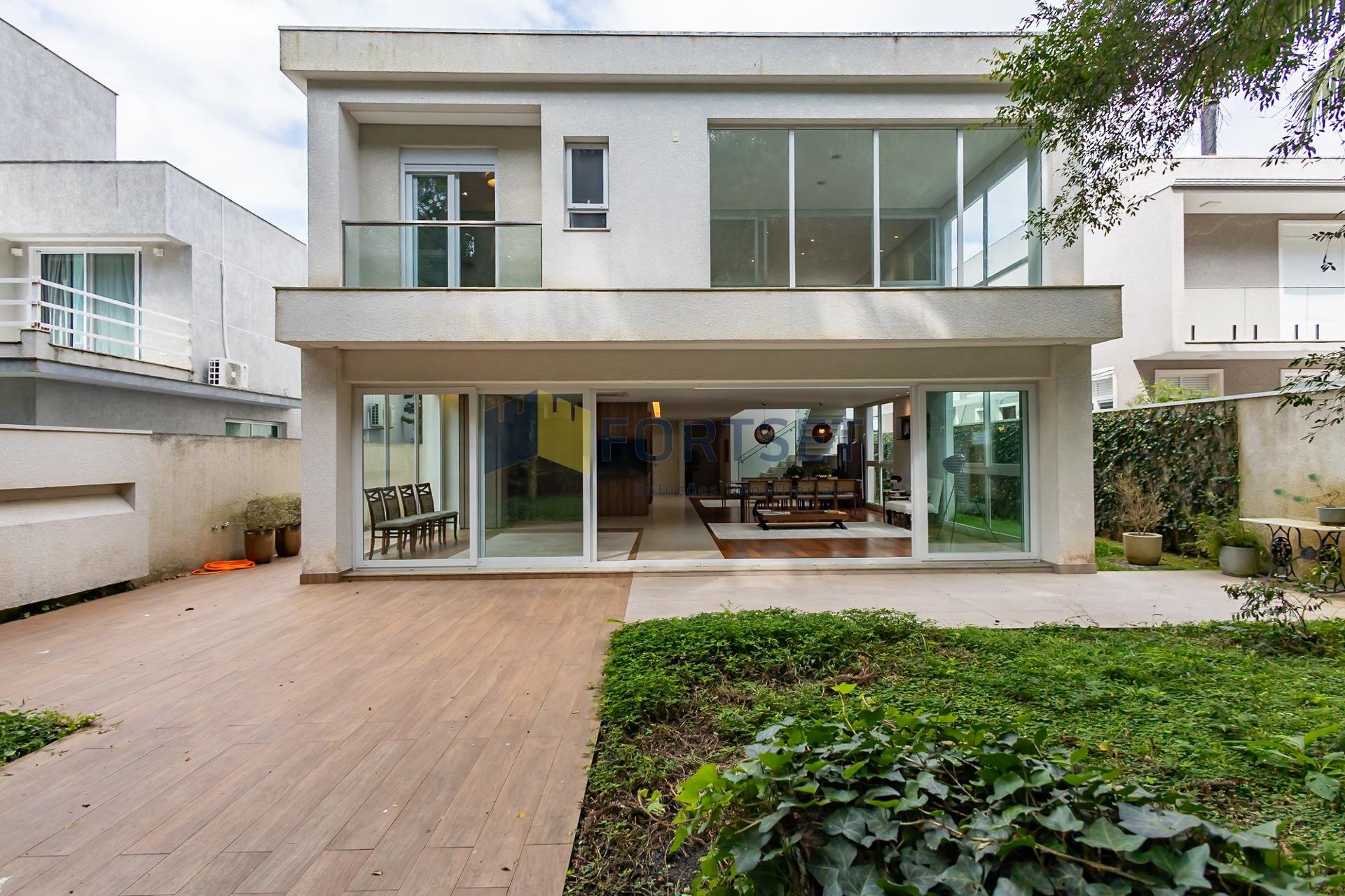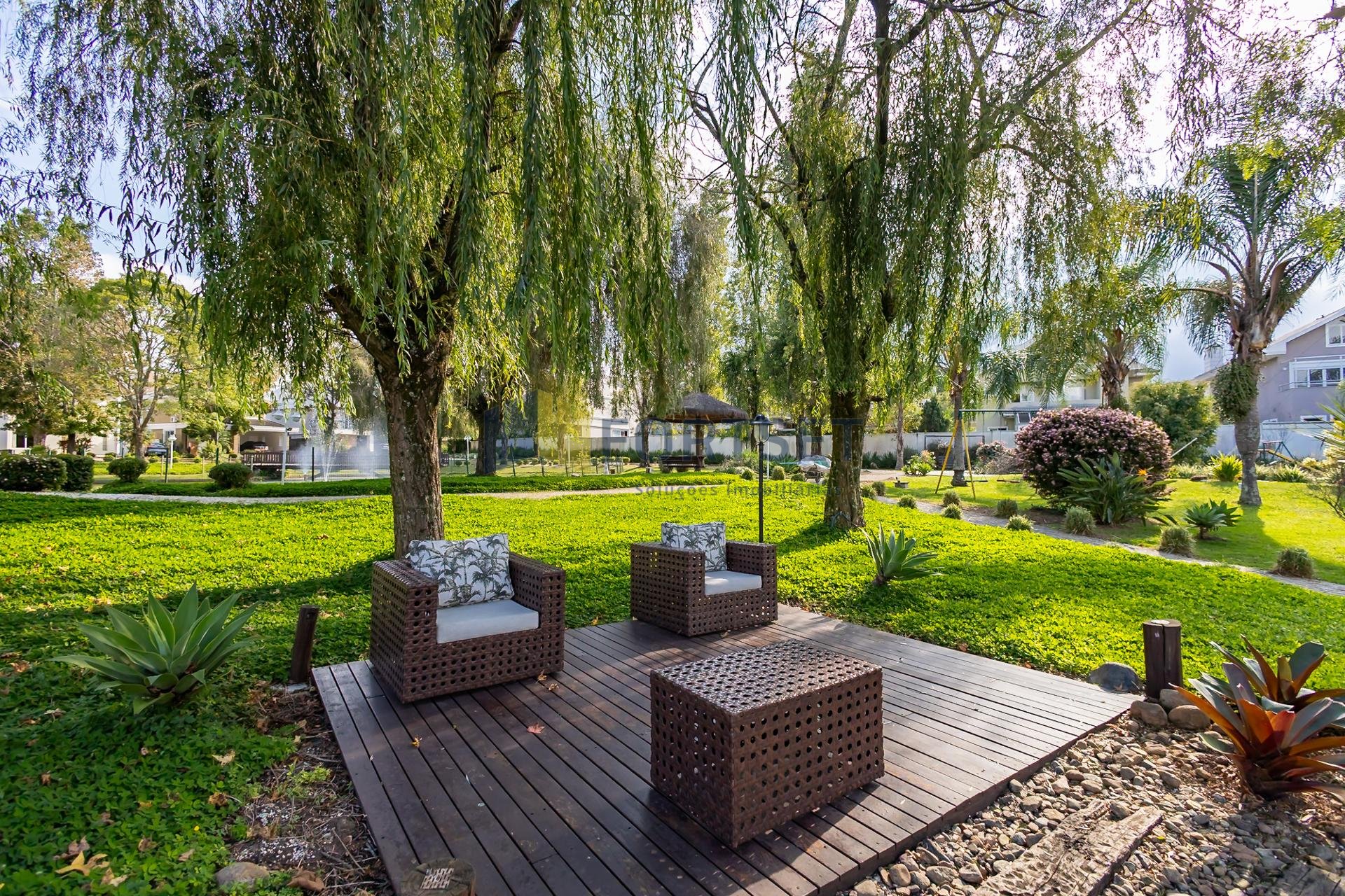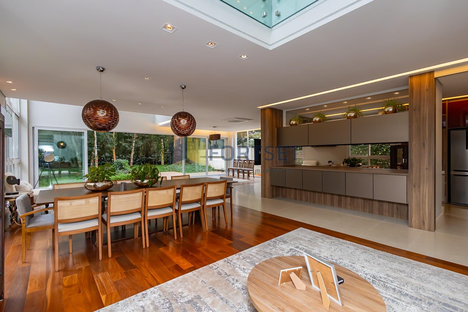No segundo pavimento, encontram-se 03 espaçosas suítes, garantindo privacidade e conforto a todos os moradores, além de uma acolhedora sala íntima. O grande diferencial desta propriedade reside na sua perfeita integração com a natureza. Um extenso quintal, adornado por uma rica vegetação e com acesso direto ao bosque privativo do condomínio, proporciona a atmosfera serena e revigorante de uma casa de campo, sem abrir mão das conveniências da vida urbana. Para sua comodidade, a residência dispõe de 04 vagas de garagem.