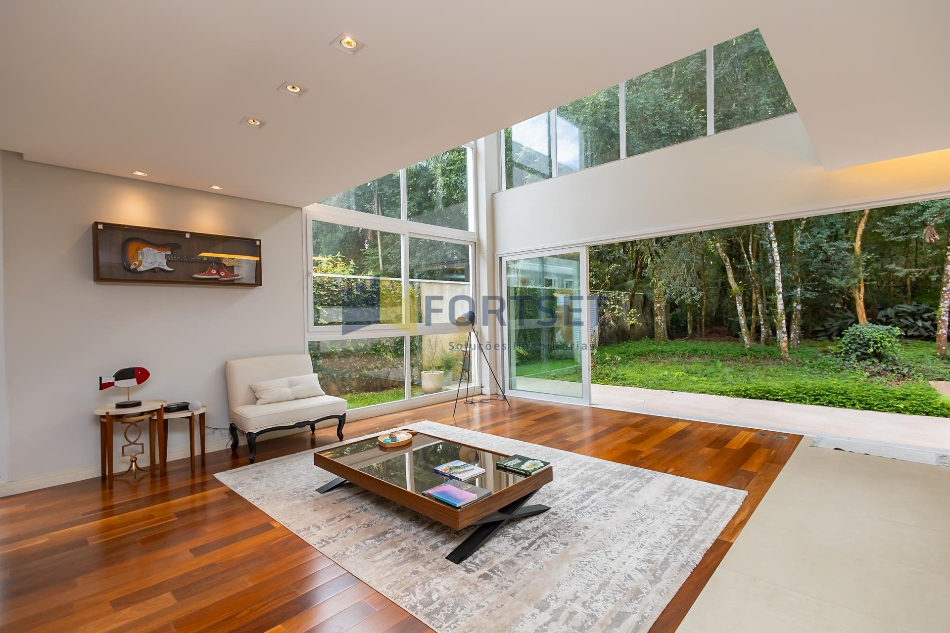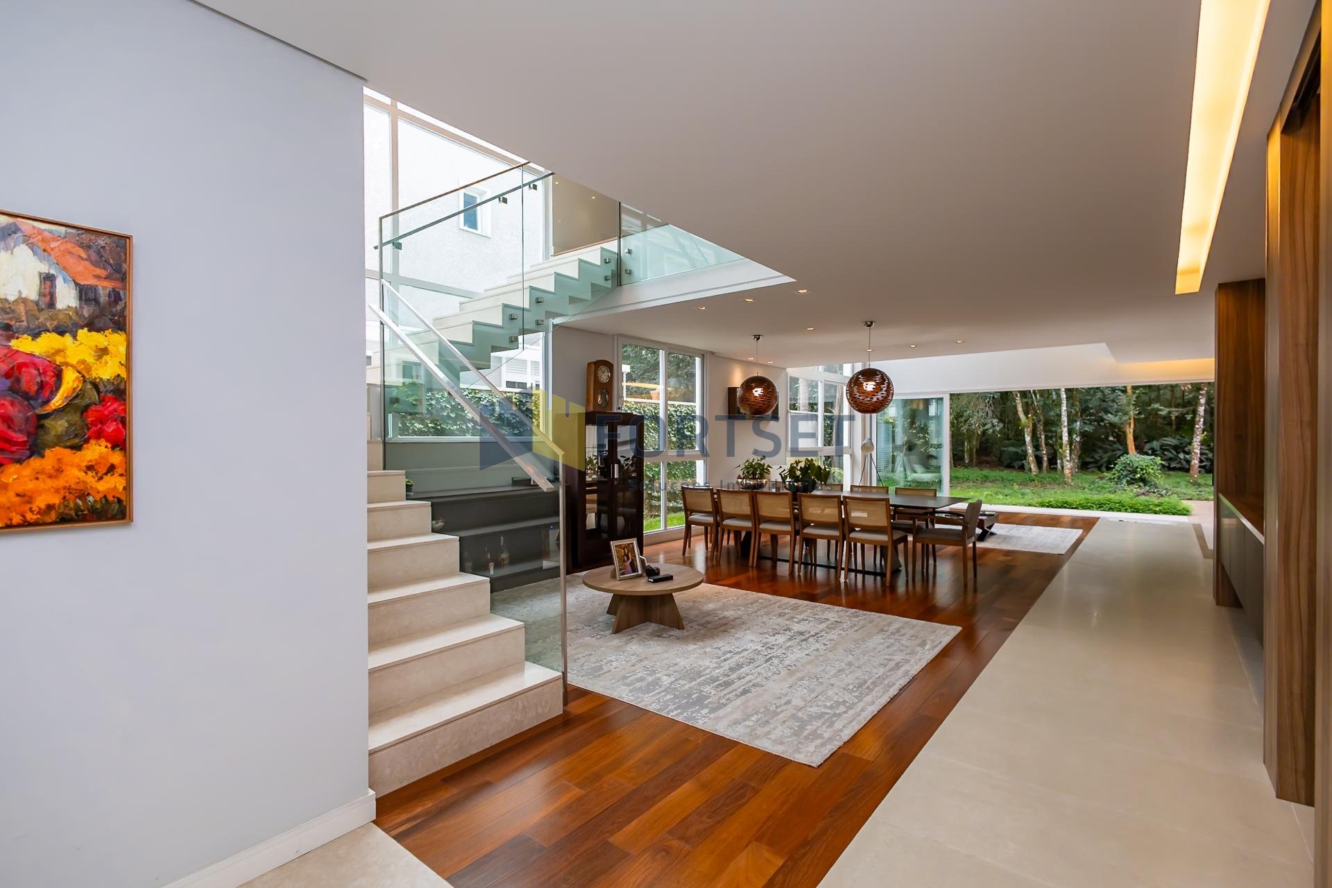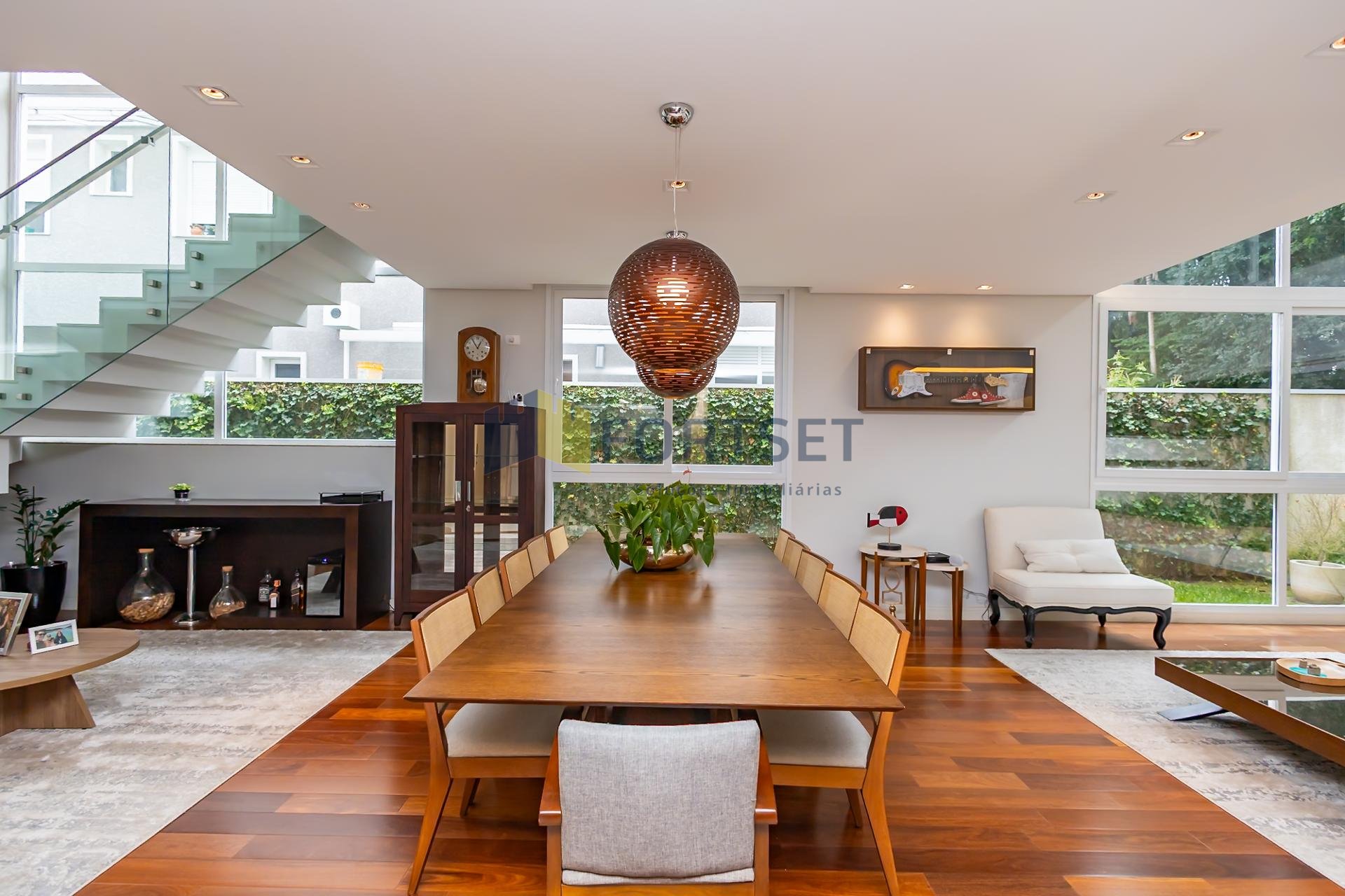 No segundo pavimento, encontram-se 03 espaçosas suítes, garantindo privacidade e conforto a todos os moradores, além de uma acolhedora sala íntima. O grande diferencial desta propriedade reside na sua perfeita integração com a natureza. Um extenso quintal, adornado por uma rica vegetação e com acesso direto ao bosque privativo do condomínio, proporciona a atmosfera serena e revigorante de uma casa de campo, sem abrir mão das conveniências da vida urbana. Para sua comodidade, a residência dispõe de 04 vagas de garagem.