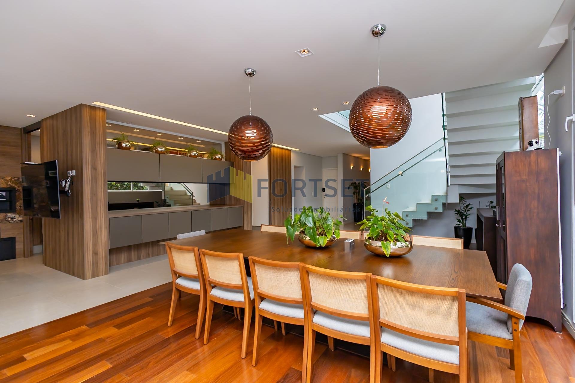 Esta casa esbanja amplitude e acolhimento, banhada por luz natural e com uma ventilação impecável, criando ambientes repletos de bem-estar para você e sua família. O primeiro pavimento impressiona com uma generosa sala de estar integrada para até 03 ambientes, realçada por um elegante pé direito duplo. Um lavabo sofisticado complementa este espaço social. A cozinha gourmet, equipada com armários planejados Kitchens de alta qualidade, é um convite à culinária e ao convívio. Ainda neste pavimento, uma suíte completa, atualmente utilizada como escritório, oferece versatilidade ao seu dia a dia.