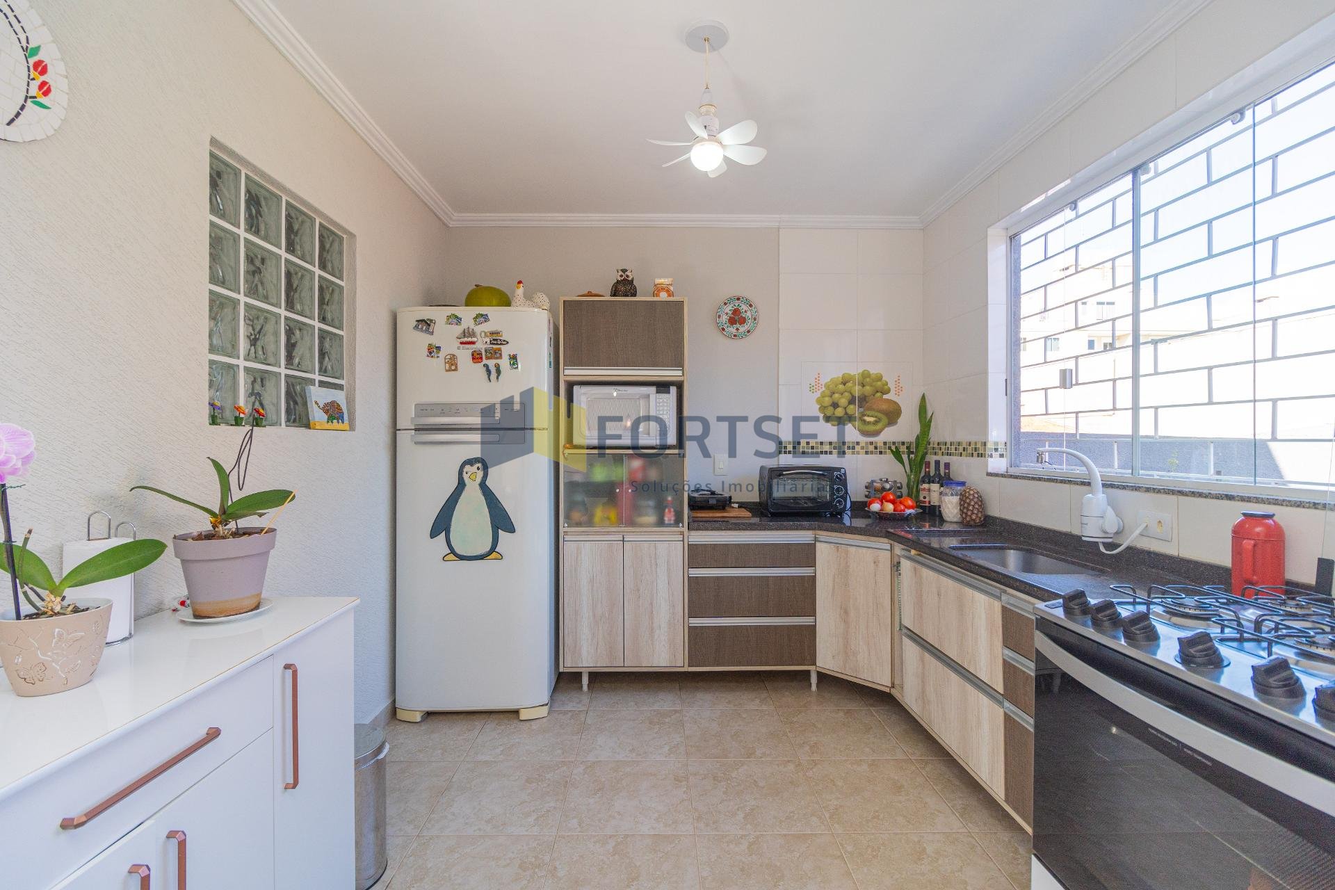 Cozinha espaçosa, bem ventilada e com acesso fácil à área externa