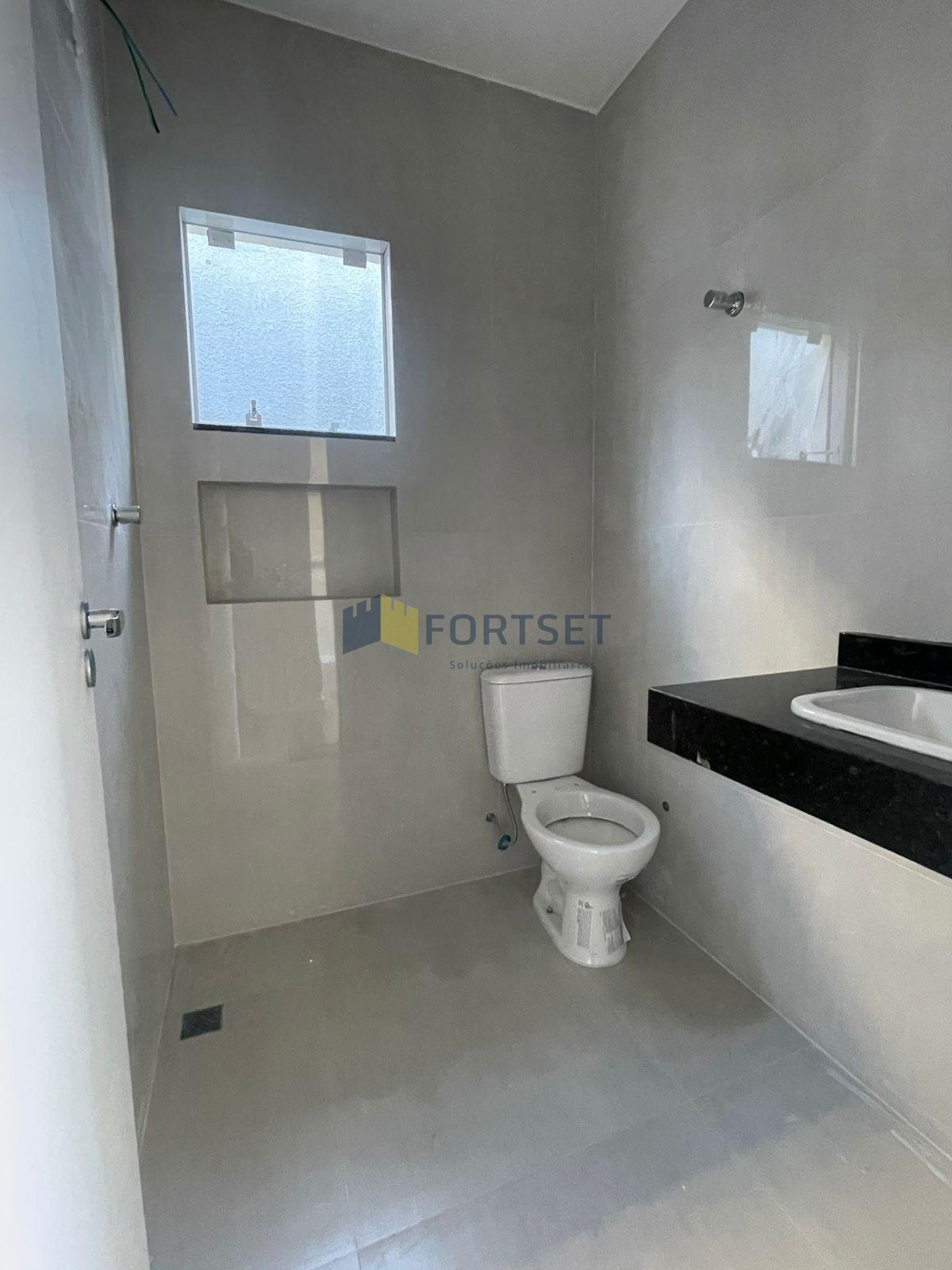 Suíte com banheiro moderno e bem acabado;