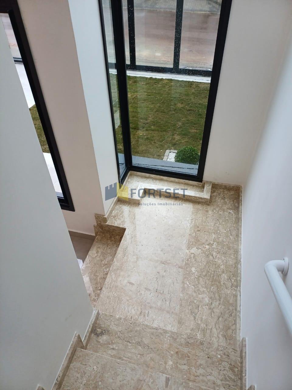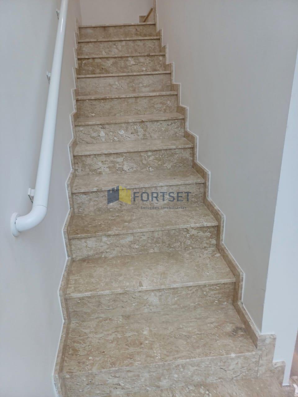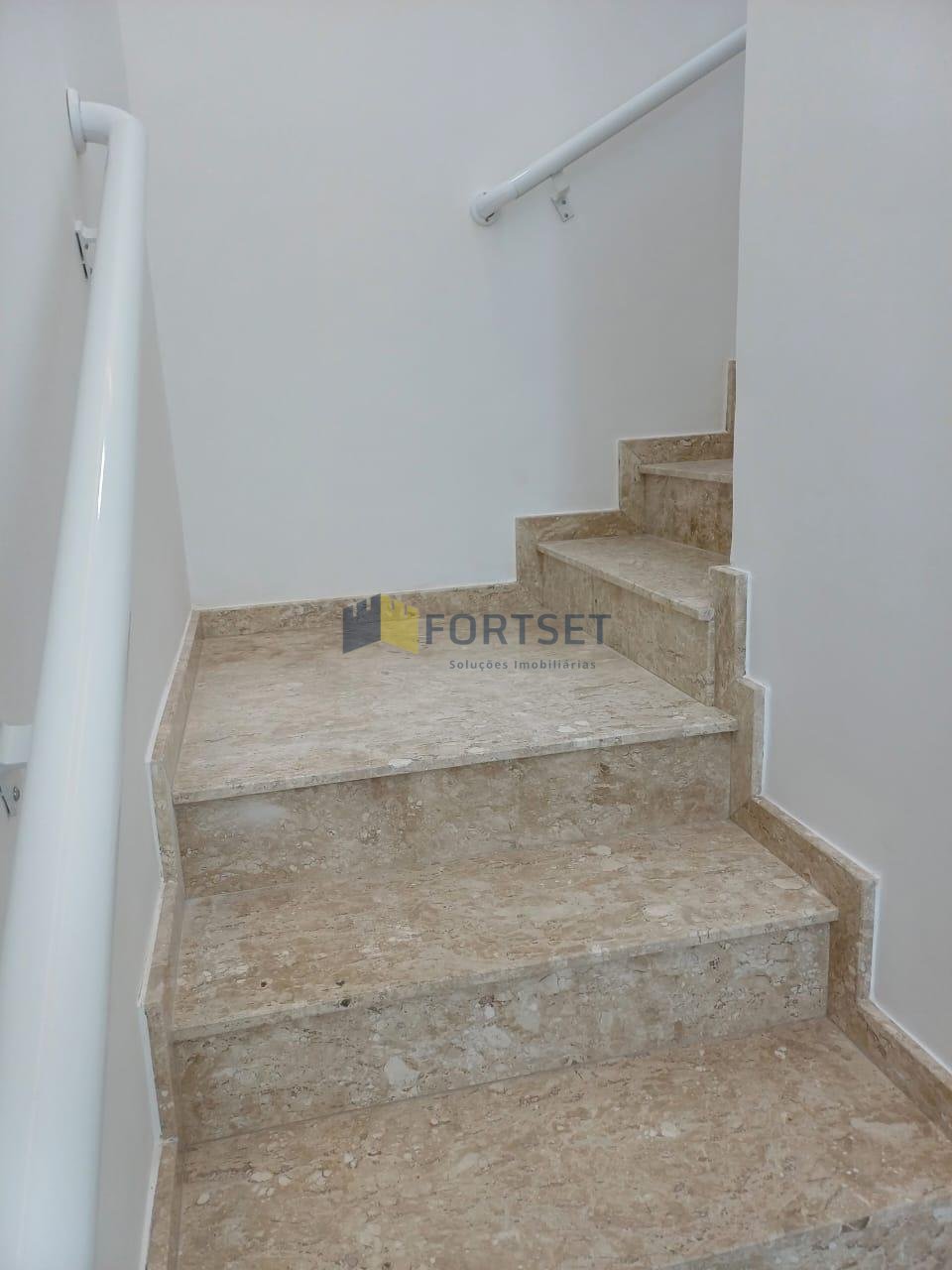 - Escada confortável com patamar, em granito