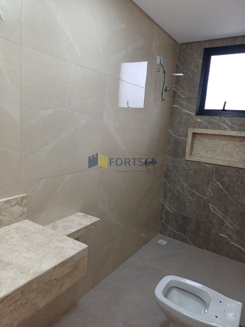 - 3 banheiros completos com acabamentos de alto padrão, box em vidro verde e bancadas em granito